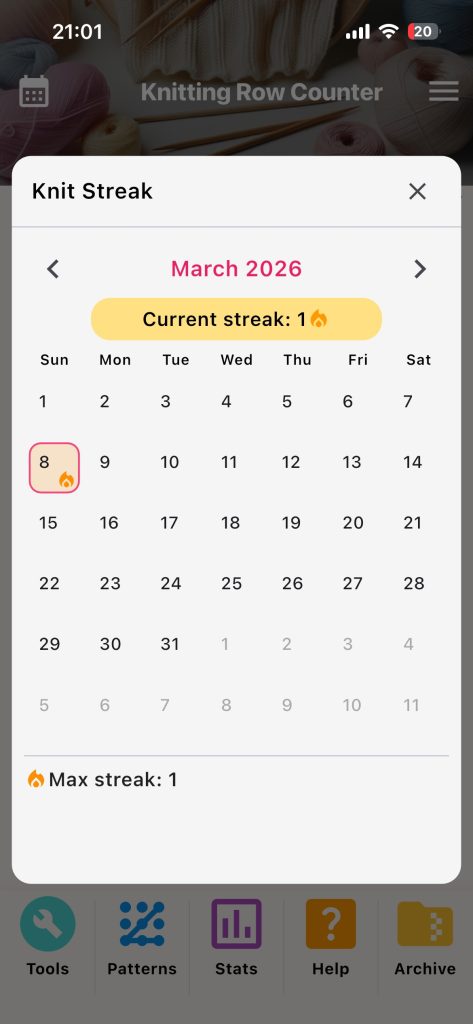 This section helps you track consistency and long-term knitting activity.